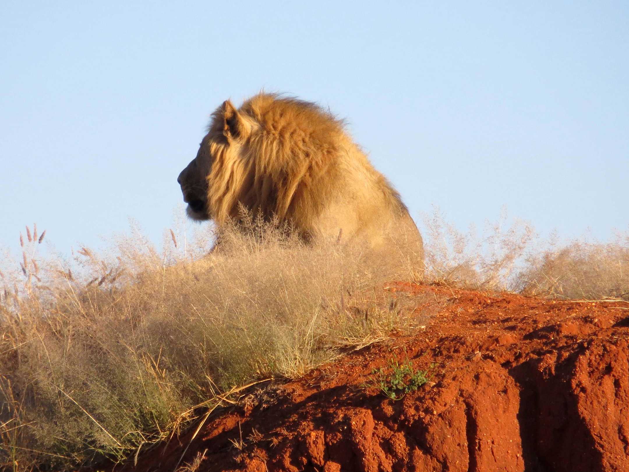 Löwe direkt vor dem Camp