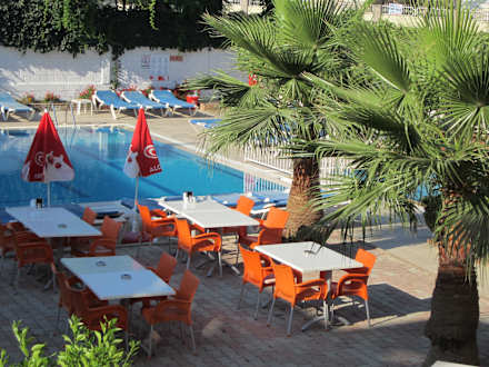 Pool und Tische zum essen