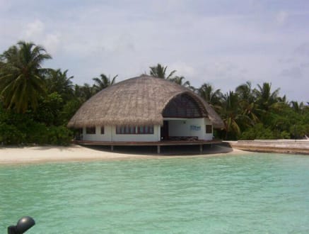 Blick vom Steg auf die Tauchschule auf Velavaru