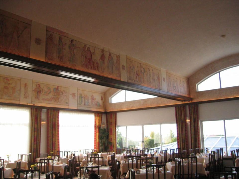 Man kann hier das Hauptrestaurant sehen mit den Malereien an der Decke.