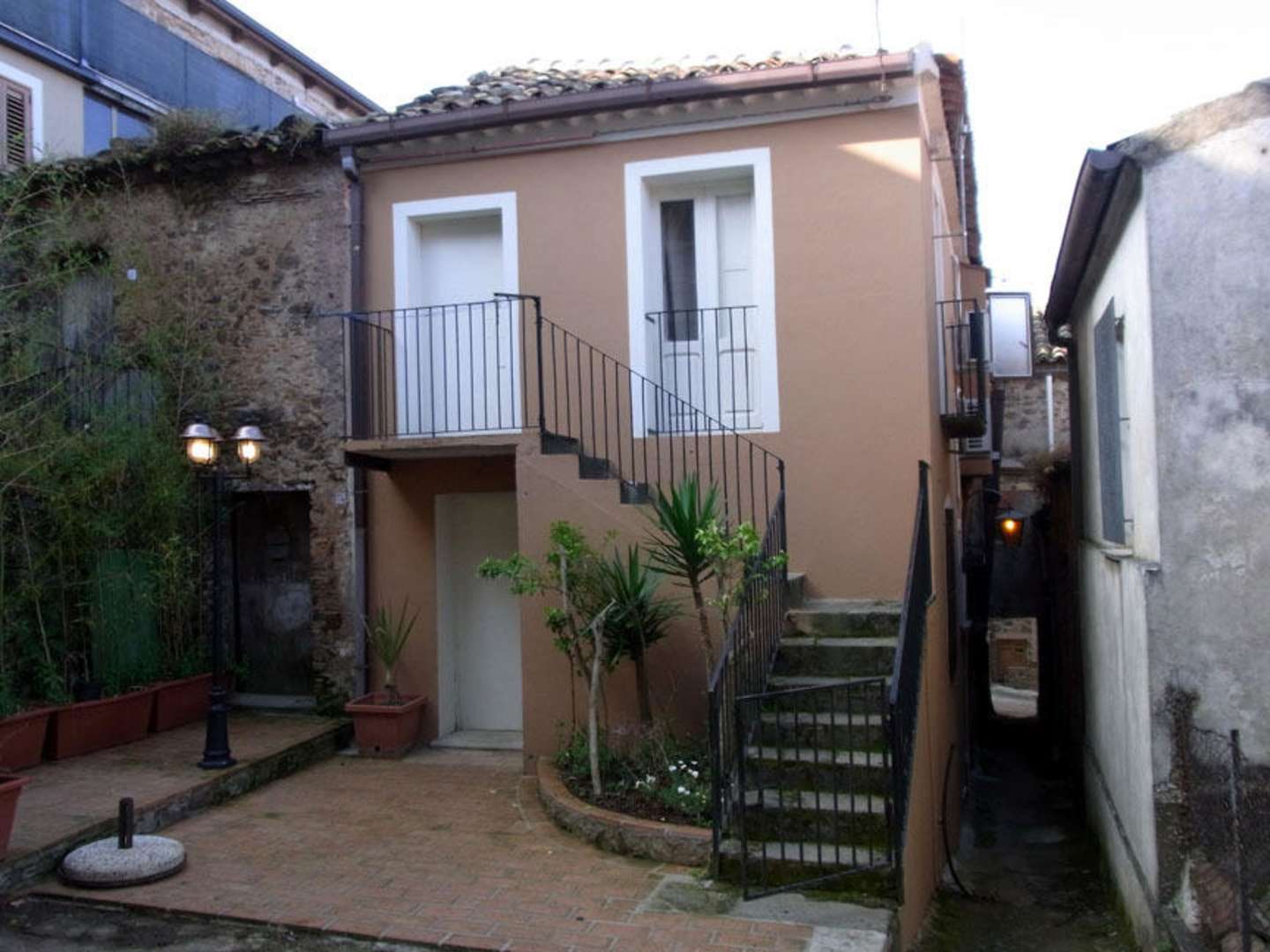 Zwei Zimmer in einem externen Haus in einem Innenhof gegenüber des Hotels.