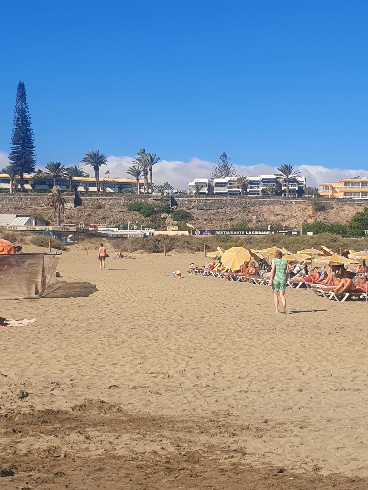 Im Hintergrund (oberhalb der Liegen) das El Paseo