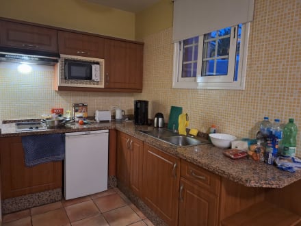 Küche (rustikal, aber alles vorhanden und funktional!) inkl. Mikrowelle und zwei Herdplatten