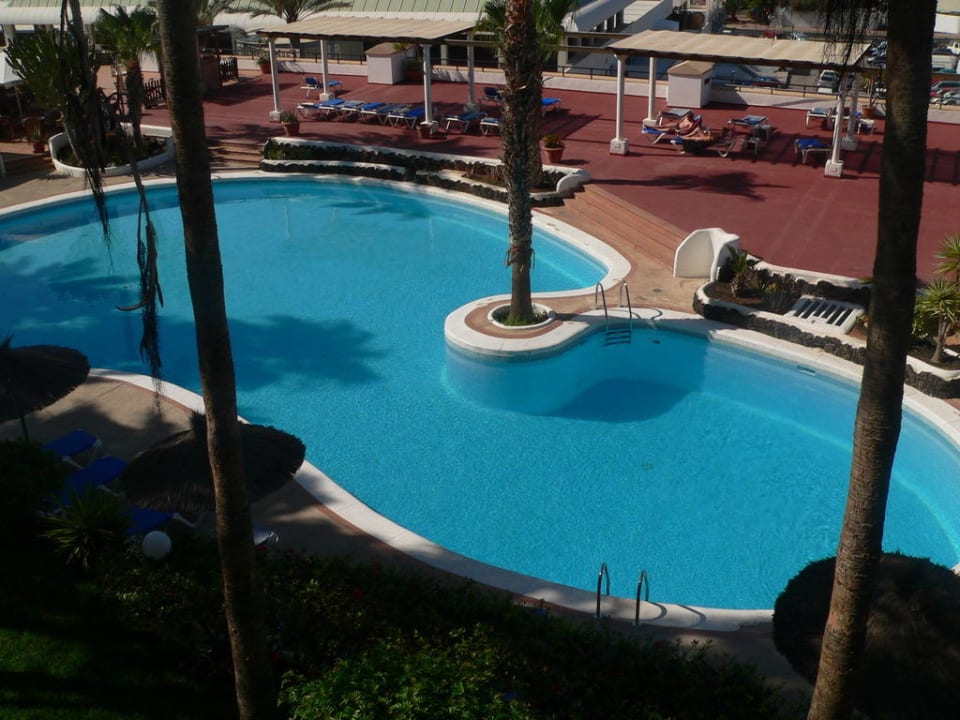 Blick von unserem Zimmer auf den Pool.