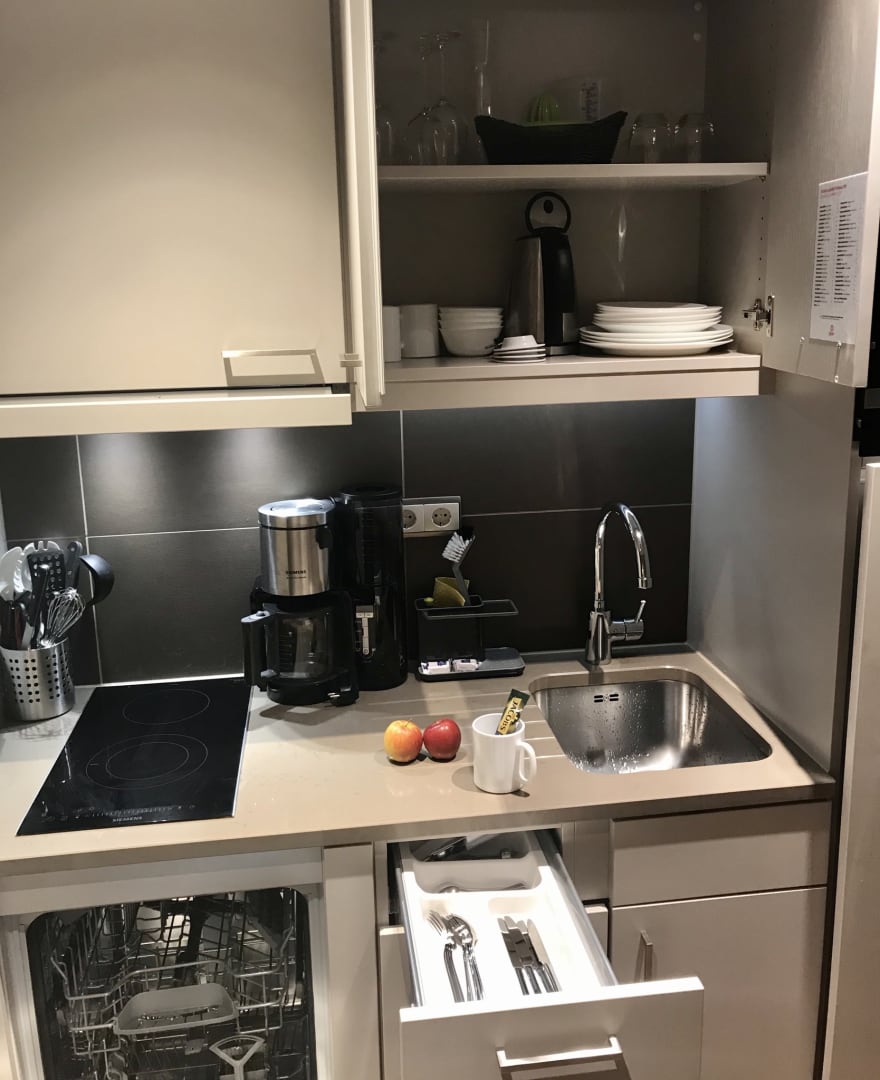 Studio-Zimmer: Alles vorhanden. Sogar eine Spülmaschine