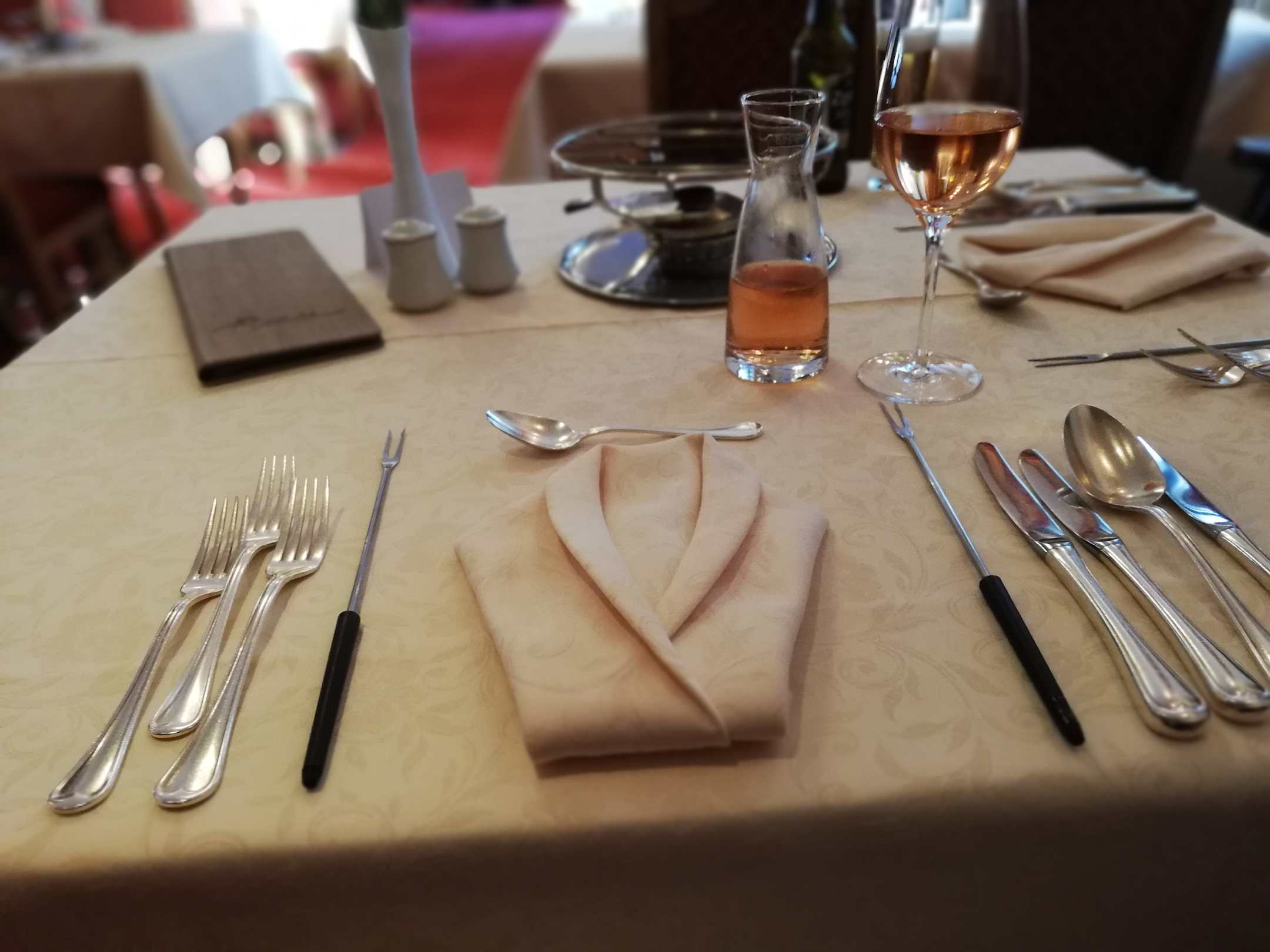 Am letzten Abend gab es ein Fondue. Jeder Tisch hatte einen eigenen Rechaud