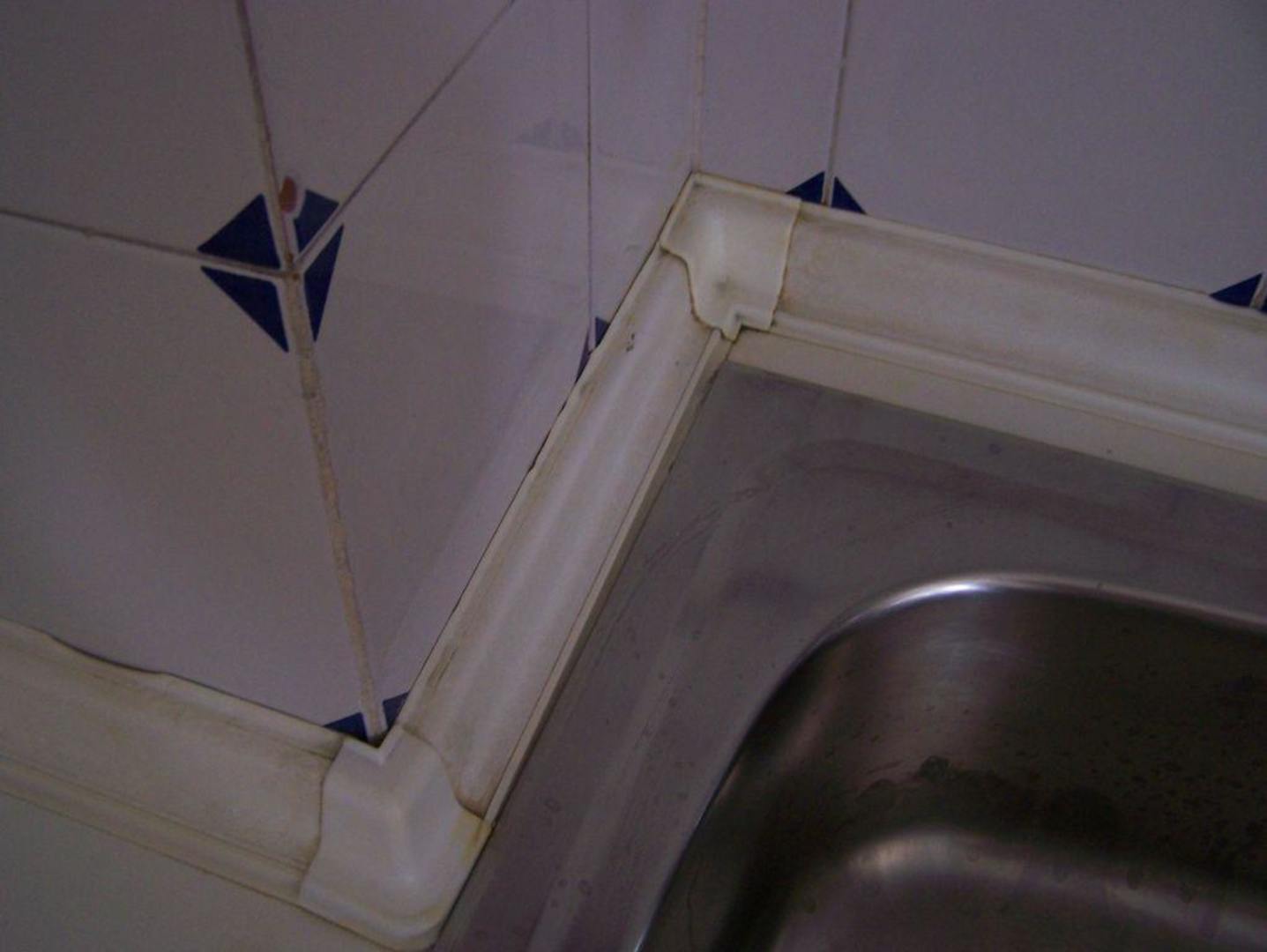 Das Bild zeigt den Zustand rund um die gesamte Spül- und Kochecke