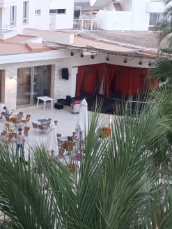 Von unserem Balkon im 3. Stock zum Innenhof und zur Bühne