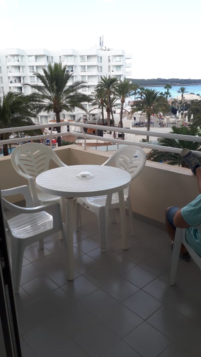 Balkon mit Blick auf den Innenhof, den Naturstrand (direkt gegenüber, auf dem Bild nicht drauf), Sandstrand (fußläufig ca. 5 Minuten) - Wäscheleinen ausreichend vorhanden