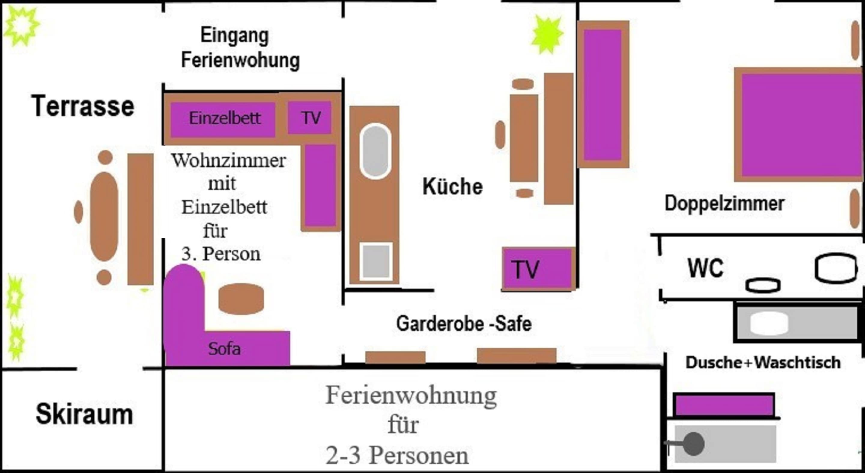 Plan Ferienwohnung für 1-3 Personen