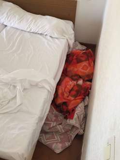 Alte Wolldecken als Bettüberwurf