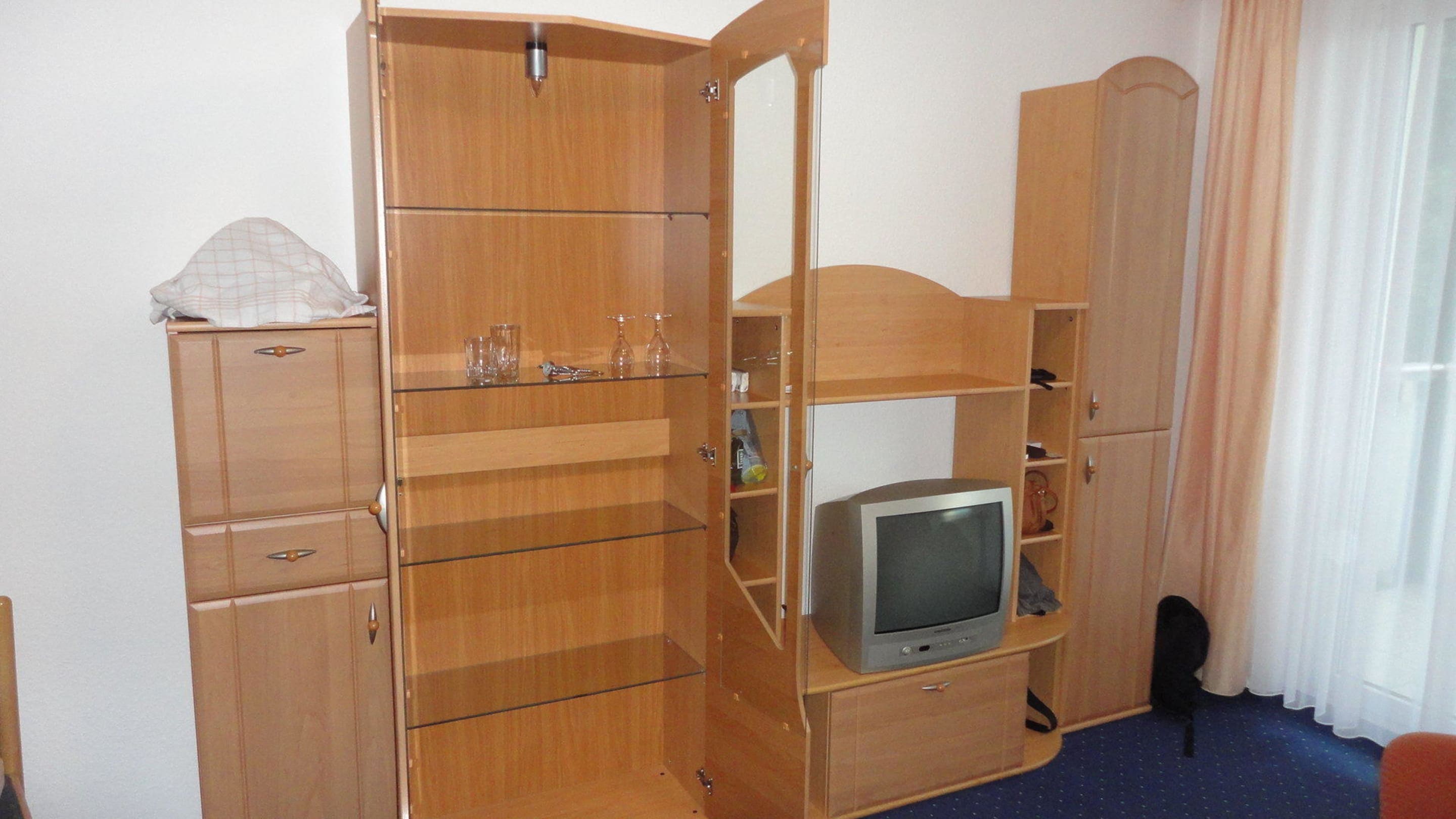 Leere Schrankwand, nein ein Röhrenfernseher ist da