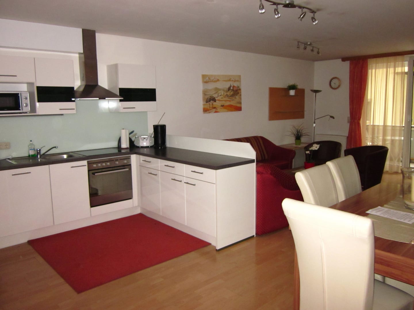 Großer Wohnraum mit Küche, Essplatz und Wohnzimmer