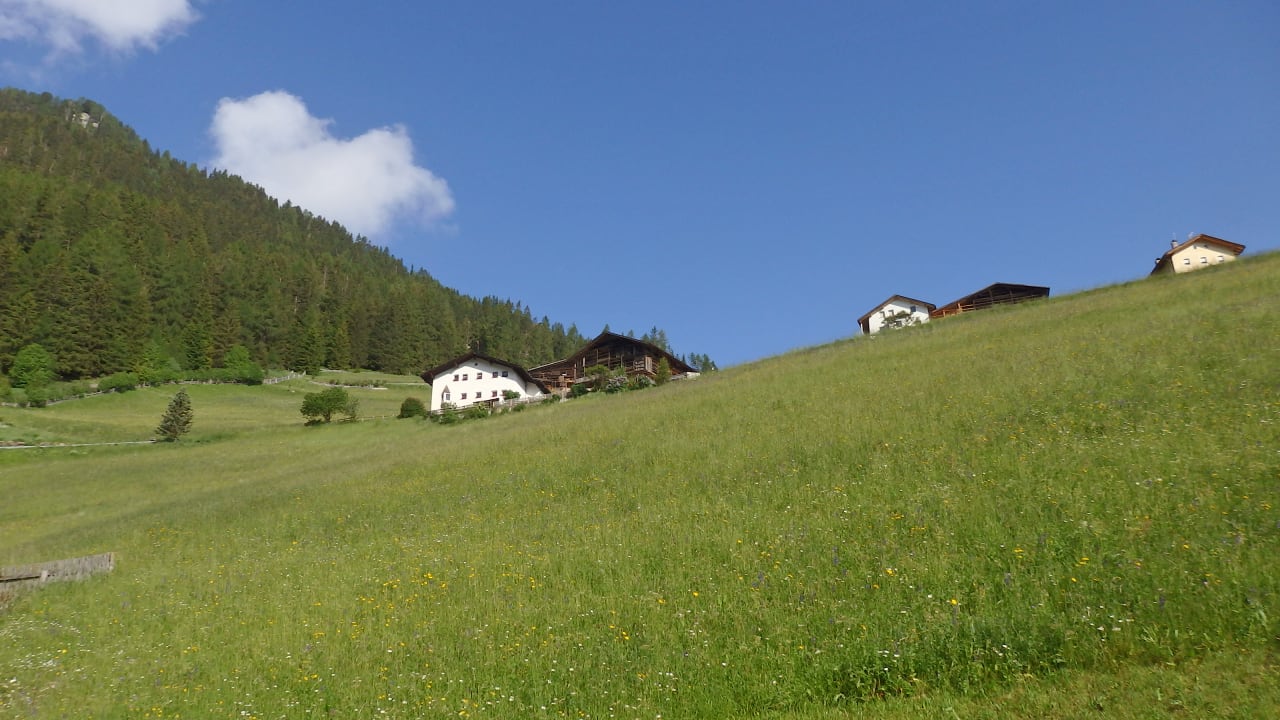 Ausblick von der Terrasse auf unseren Almblumenhang