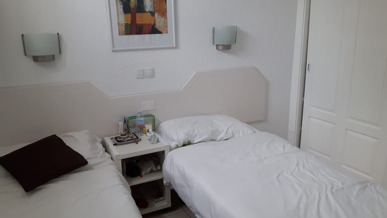 Schlafzimmer mit 2 Einzelbetten u. kleinem Kleiderschrank