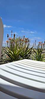 Blick von der Terrasse über die Dünen von Maspalomas zum Meer
