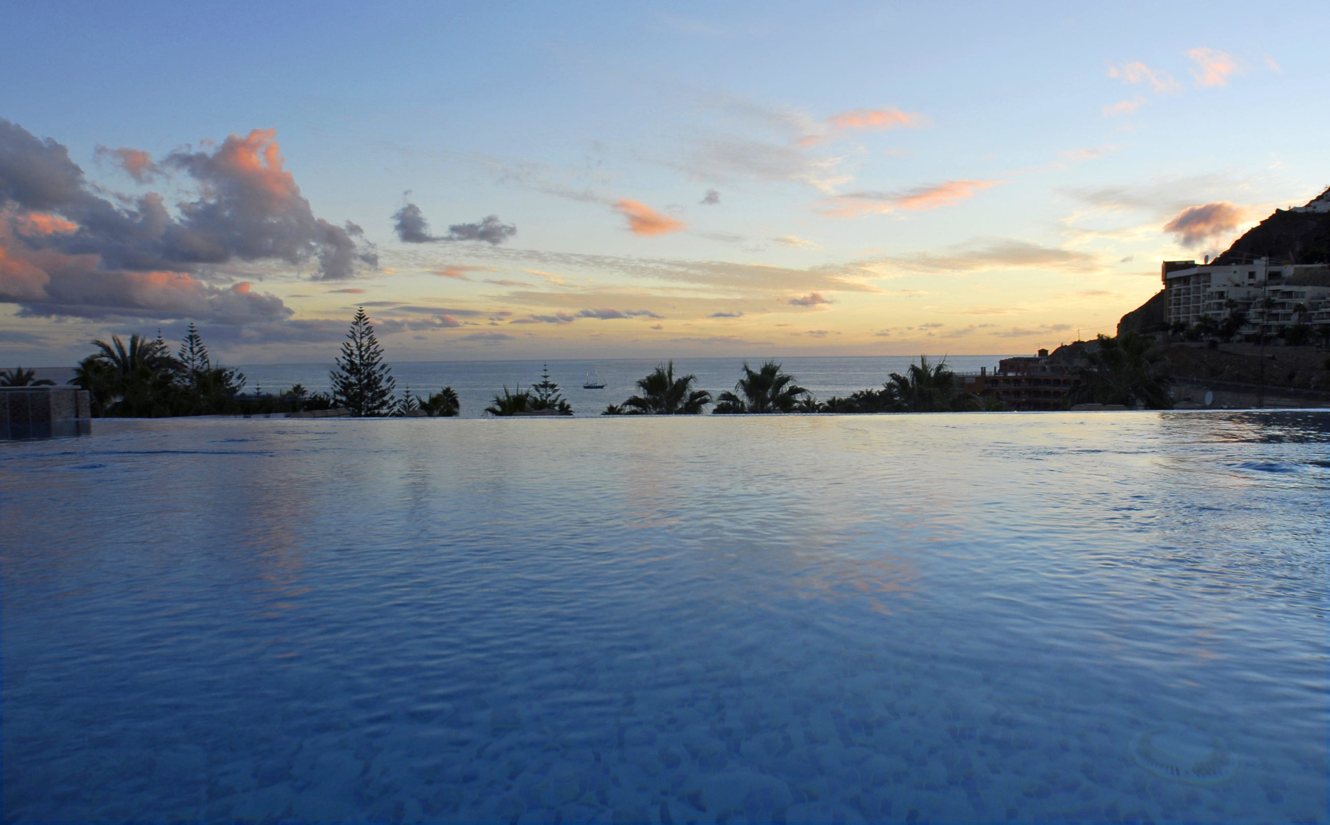 Unsere Aussicht von der Poolterrasse bei Nacht