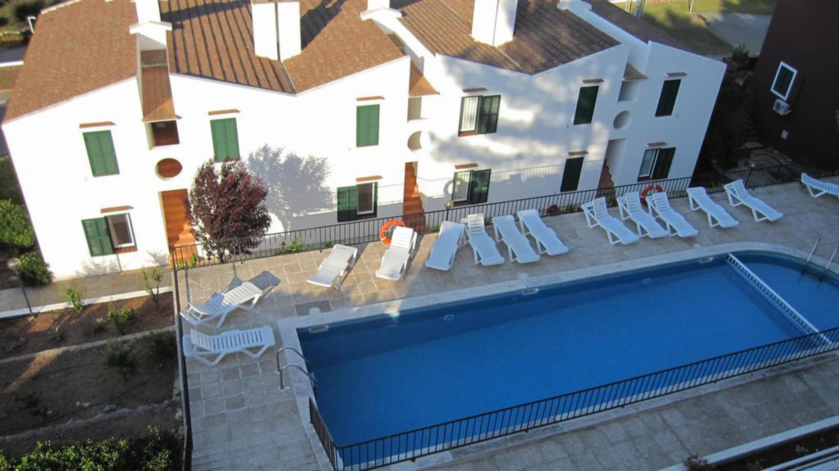 Blick von den oberen Apartments auf den Pool