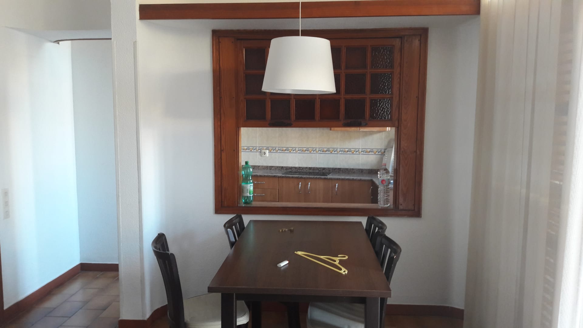 ZimmerSitzgelegenheit und im Hintergrund die Küche. Gut ausgestattet, was man so braucht, wenn man sich selberversorgen möchte.
