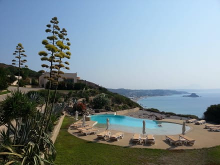 Vue de la piscine et de la baie de Kefalos