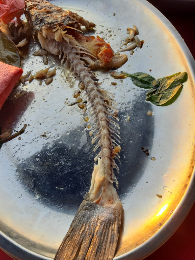 Abendessen in der Oase: Wolfsbarsch (hat super geschmeckt)