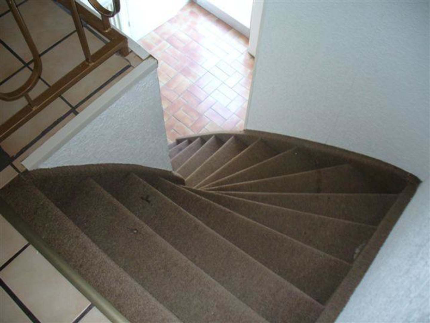 Blick von oben die steile Treppe runter