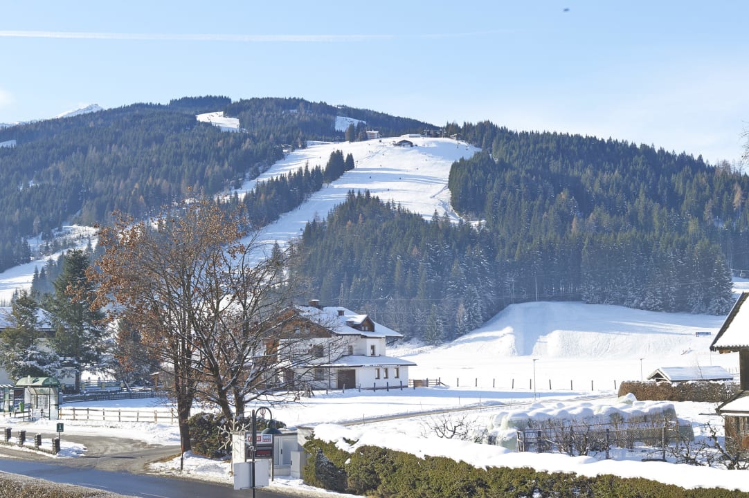 Ausblick Richtung Piste/Skigebiet Snow Space
