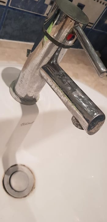 Wasserhahn und Waschbecken voll dreckig, in den 13 Tagen nicht gesäubert
