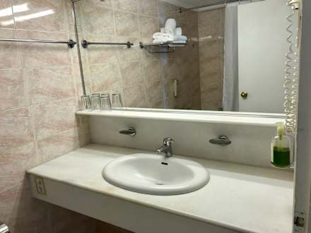 Ausreichend großes Waschbecken mit viel Ablagefläche.