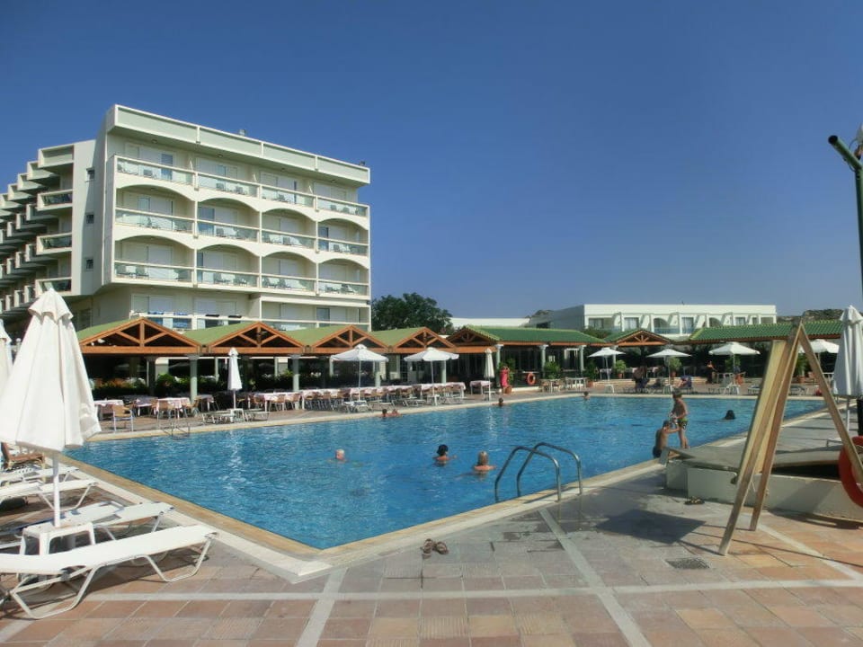 Blick aufs Hotel mit Rücken zur Liegewiese