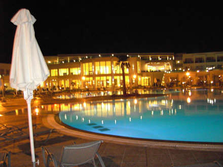 Blick vom Pool auf Hotel