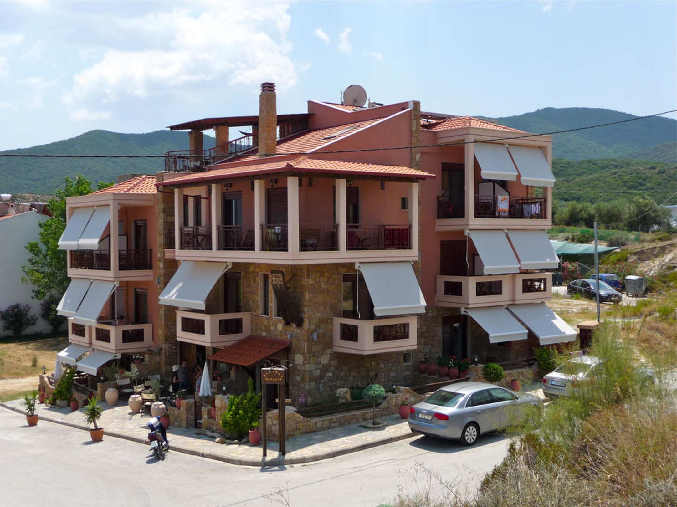Attraktives Hotel in Sarti-BeachDas Hotel wird von Anastasia & Babis laufend verbessert. So wurden zur neuen Saison sämtliche Gästezimmer im Erdgeschoss mit Terrassen und einer geschmackvollen Möblierung versehen! Darüber hinaus haben sämtliche Zimmer neue Markisen erhalten.