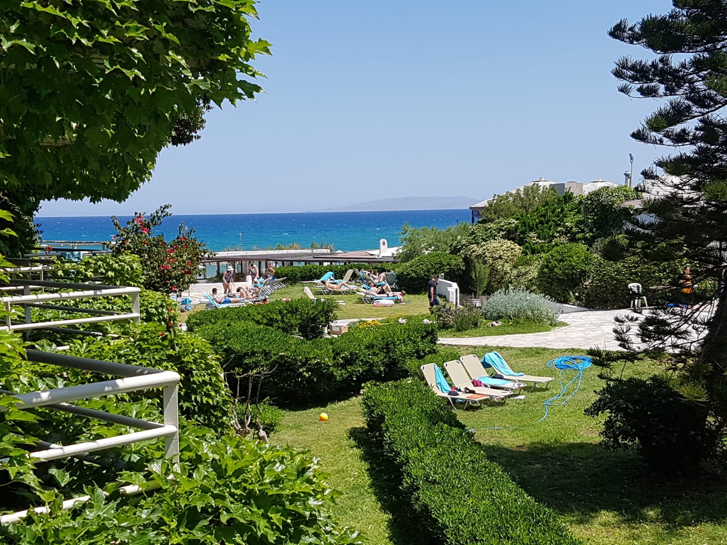 Seitlicher Meerblick von einem Bungalow-Zimmer aus.
