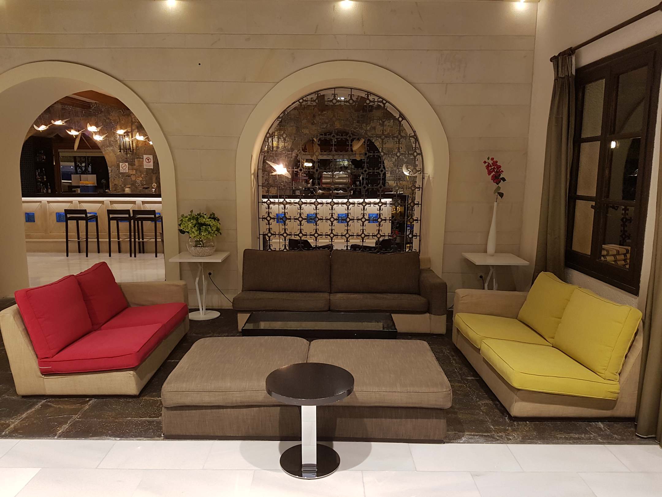 Eine der vielen Sitzecken im Lobby-Bereich. Im Hintergrund sieht man die Lobby-Bar.