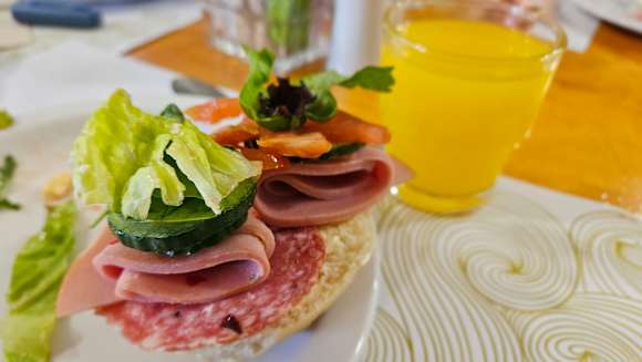 GastroEs gibt ein großes Frühstückbüfett / Man kann sich seine Brötchen selbst zusammenstellen