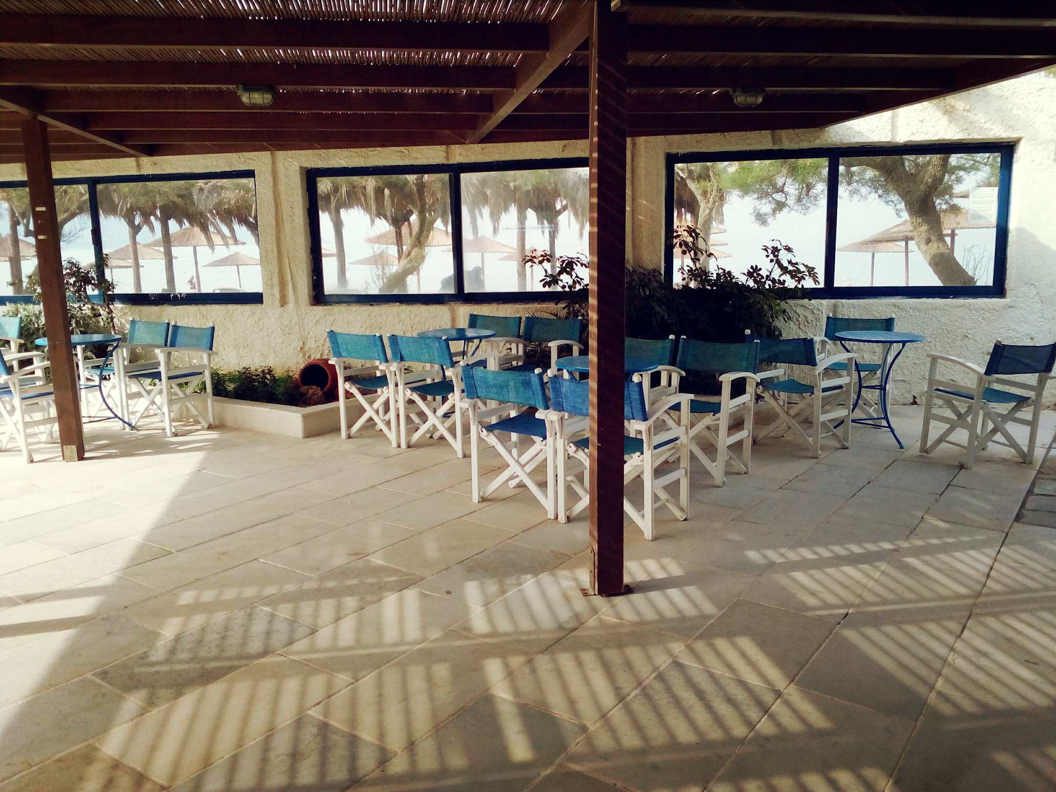 Ein Teil der Sitzbereiche bei der Beach-Bar. Dieser Bereich wird auch täglich frisch gereinigt. Der Sichtbereich zum Strand ist verglast um vor eventuellem Wind zu schützen. An der Bar sind alle international bekannten Getränke verfügbar.