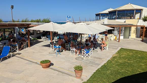 Die Strandbar ist immer gut besucht. STELIOS bedient exklusiv alle Gäste.