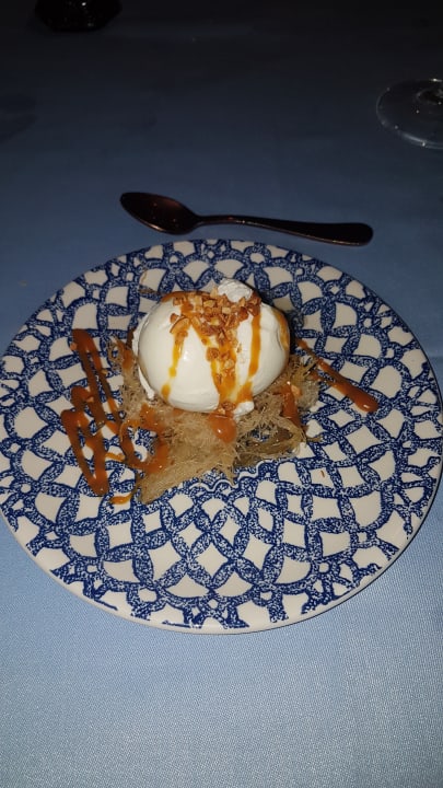 a la carte beim Griechen Vanilleeis mit karamellisierten Nüssen