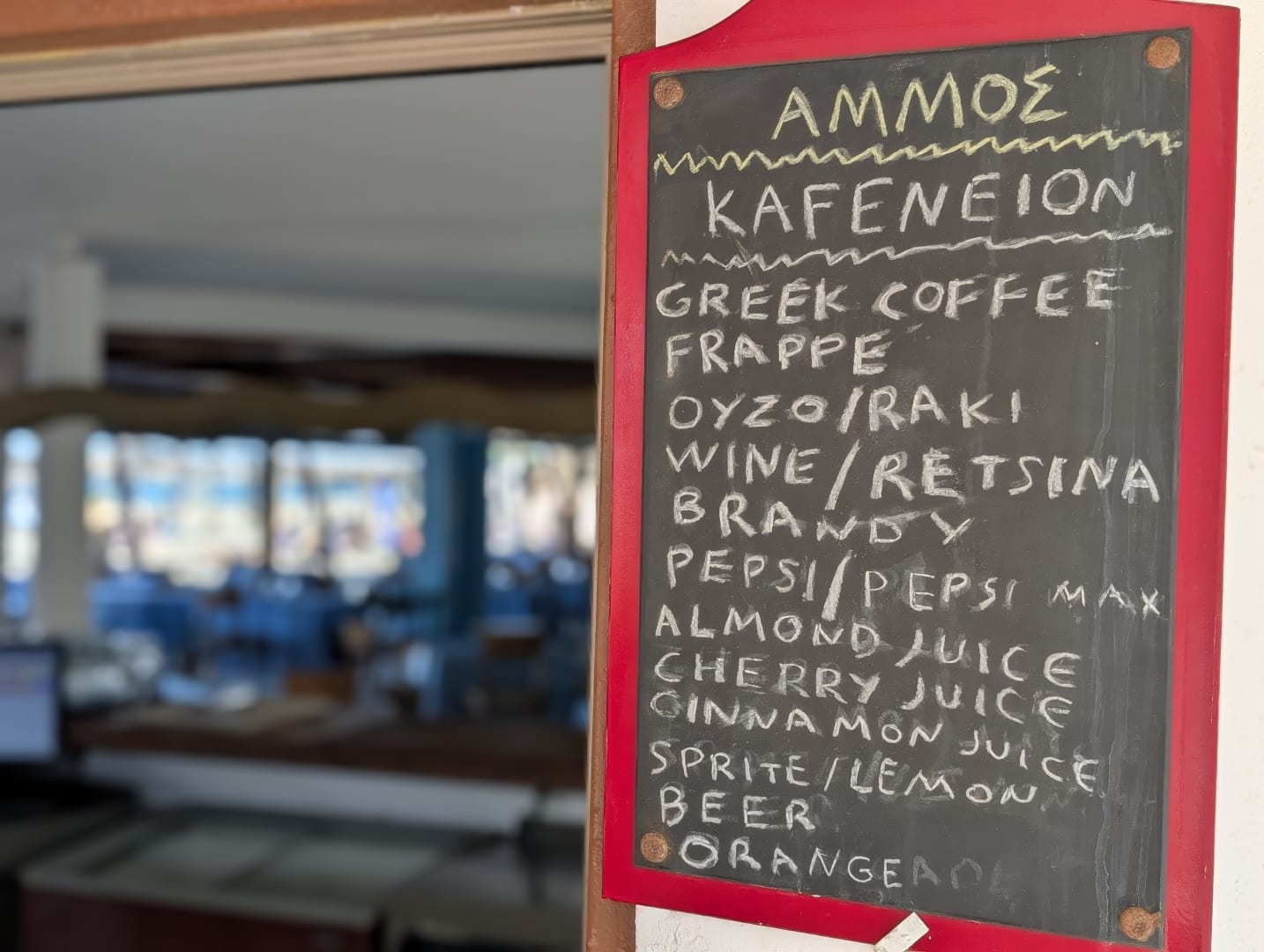 Die aktuelle Getränke-Karte am Strand-Cafe, bzw. an der "Strandbar".