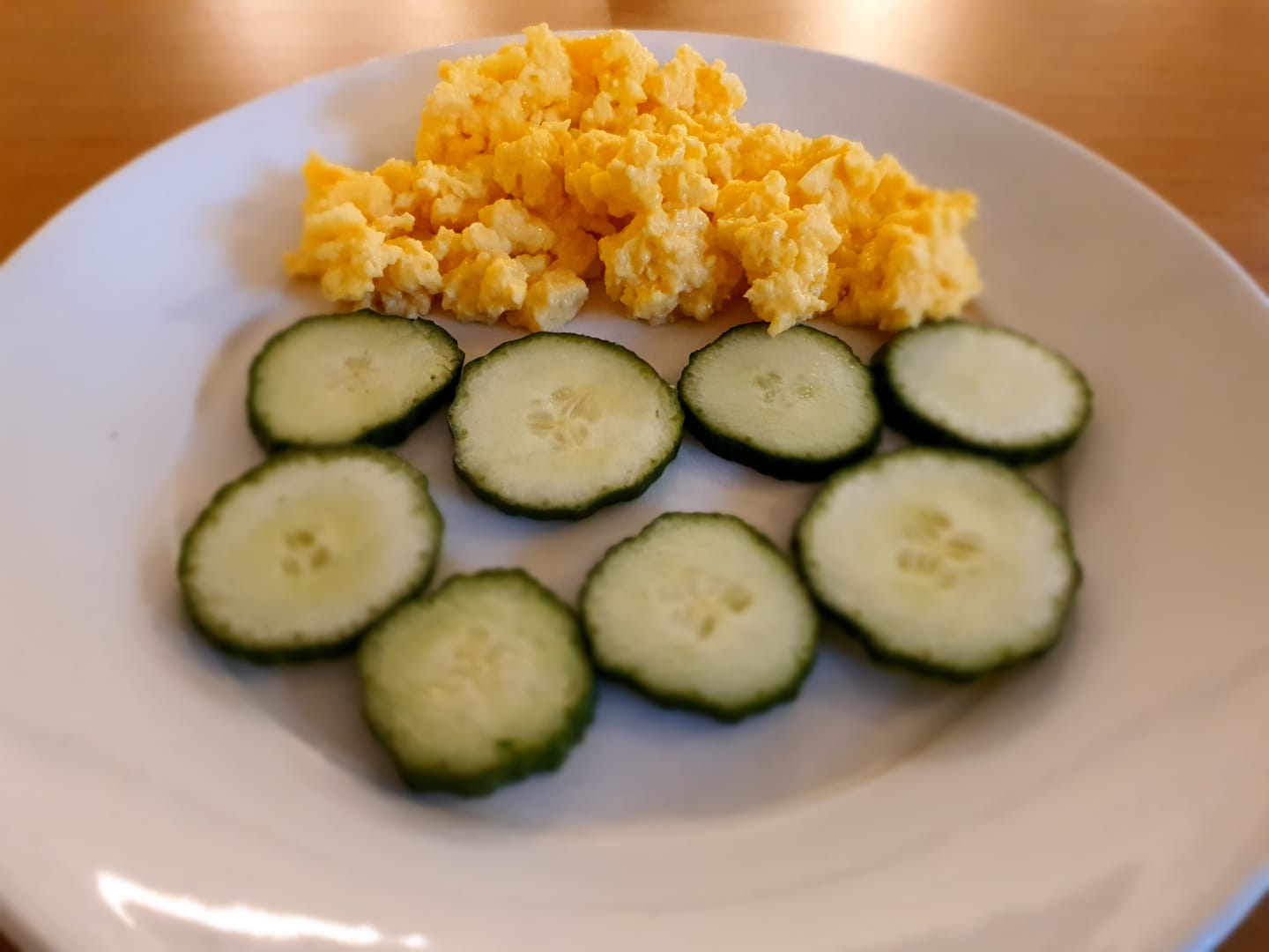 Total frisches Rührei mit einigen Gurken-Scheiben. Aus einem Frühstück kann man im Haupt-Restaurant ein tolles Genuss-Frühstück machen. Der Live-Koch, der Maitre und der Chef-Kellner "Manolis" stehen gern beratend zur Verfügung.