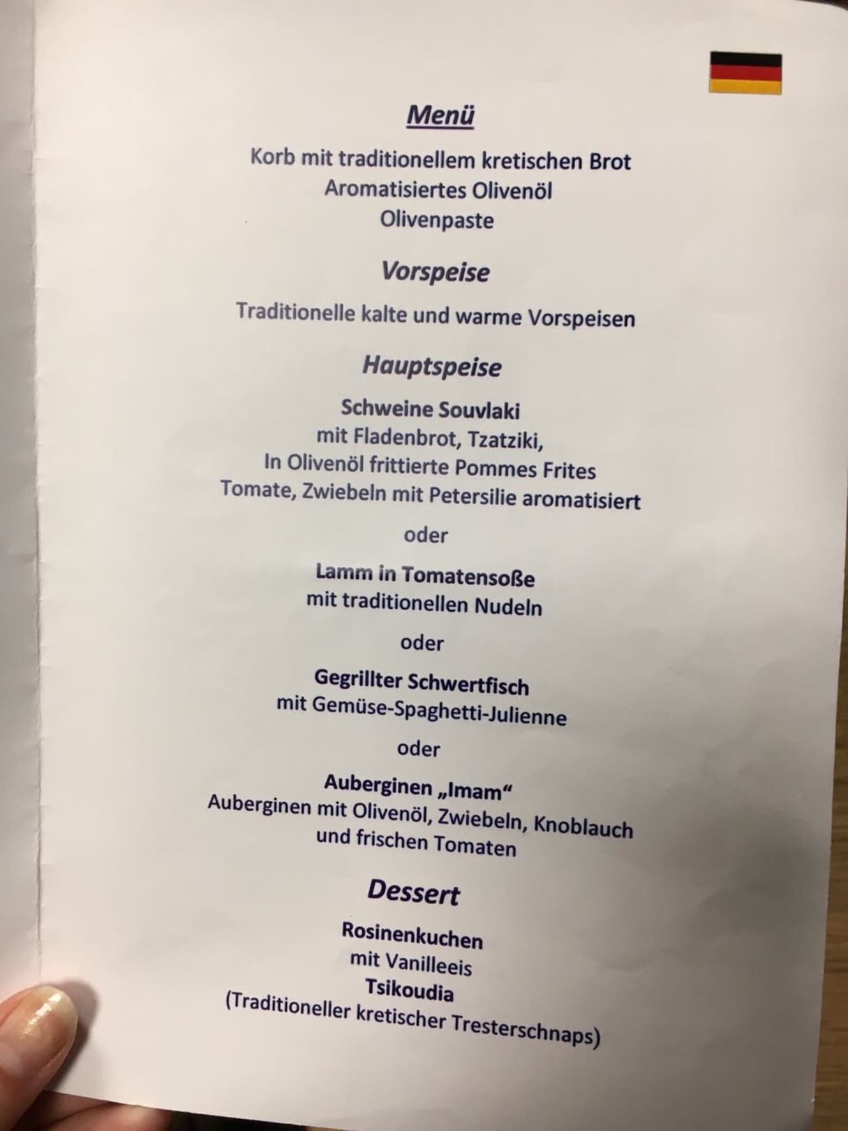 Karte griechisches Restaurant