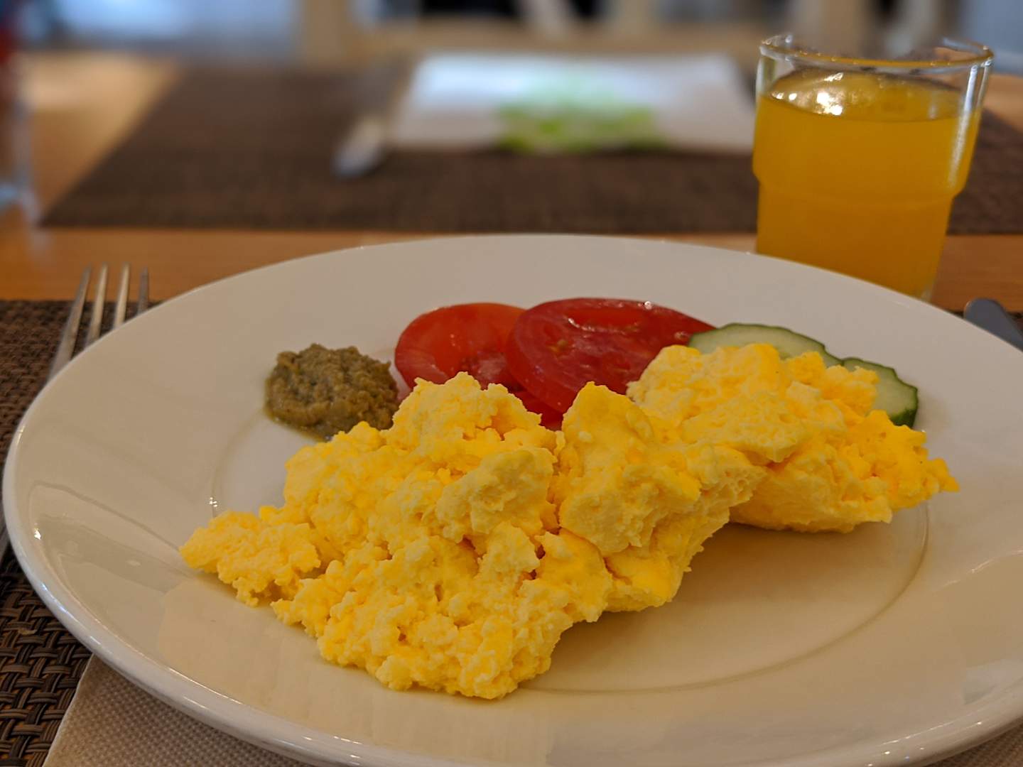 Zum Frühstück gibt es frisches Rührei. Spiegeleier werden im "live cooking" direkt auf Wunsch gemacht. Auf der Außenterrasse gibt es täglich frisch gepressten Orangensaft vom "Orangen Teo" (in der Hauptsaison).