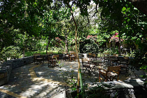 GartenanlageMitten in der großen Hotel-Gartenanlage befindet sich eine schattige Sitz-Ecke die gern von den Gästen als Ruhestelle genutzt wird. Oft kann man hier Gäste mit Büchern und Laptops beobachten. Bei Bedarf kann man sich dorthin auch Getränke bestellen.