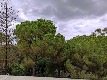 Blick vom Balkon im Haupthaus 3. Stock, eigentlich Richtung Meer, der Blick auf den Park