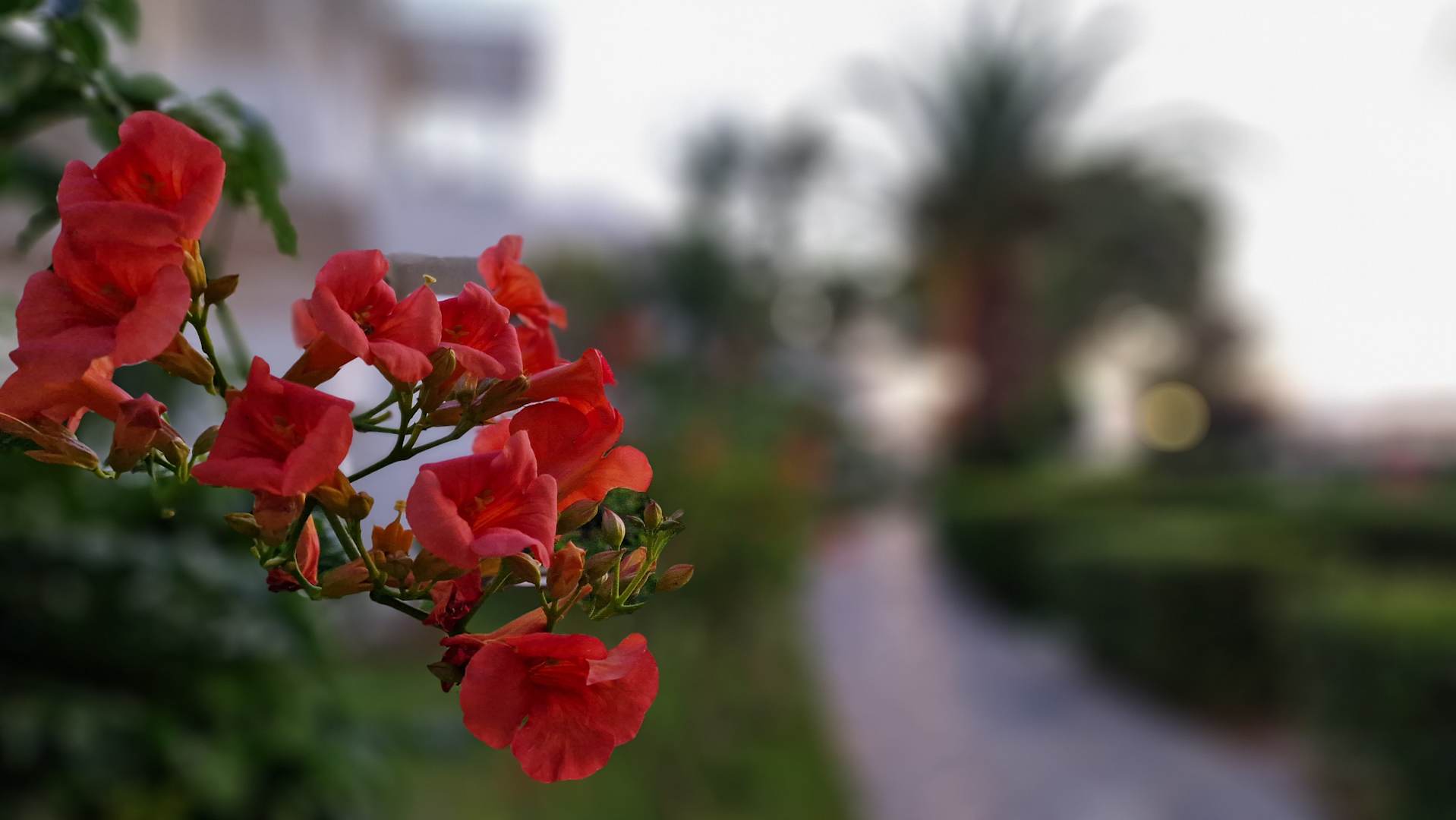 Im wunderschönen Garten blühen überall Blumen und alles ist grün und sehr farbig.