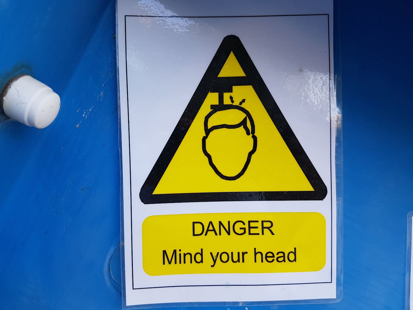 Warnschild bei der blauen Wasser-Rutsche am Kinderpool