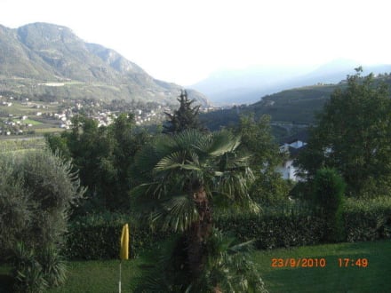 Blick über Garten nach Meran