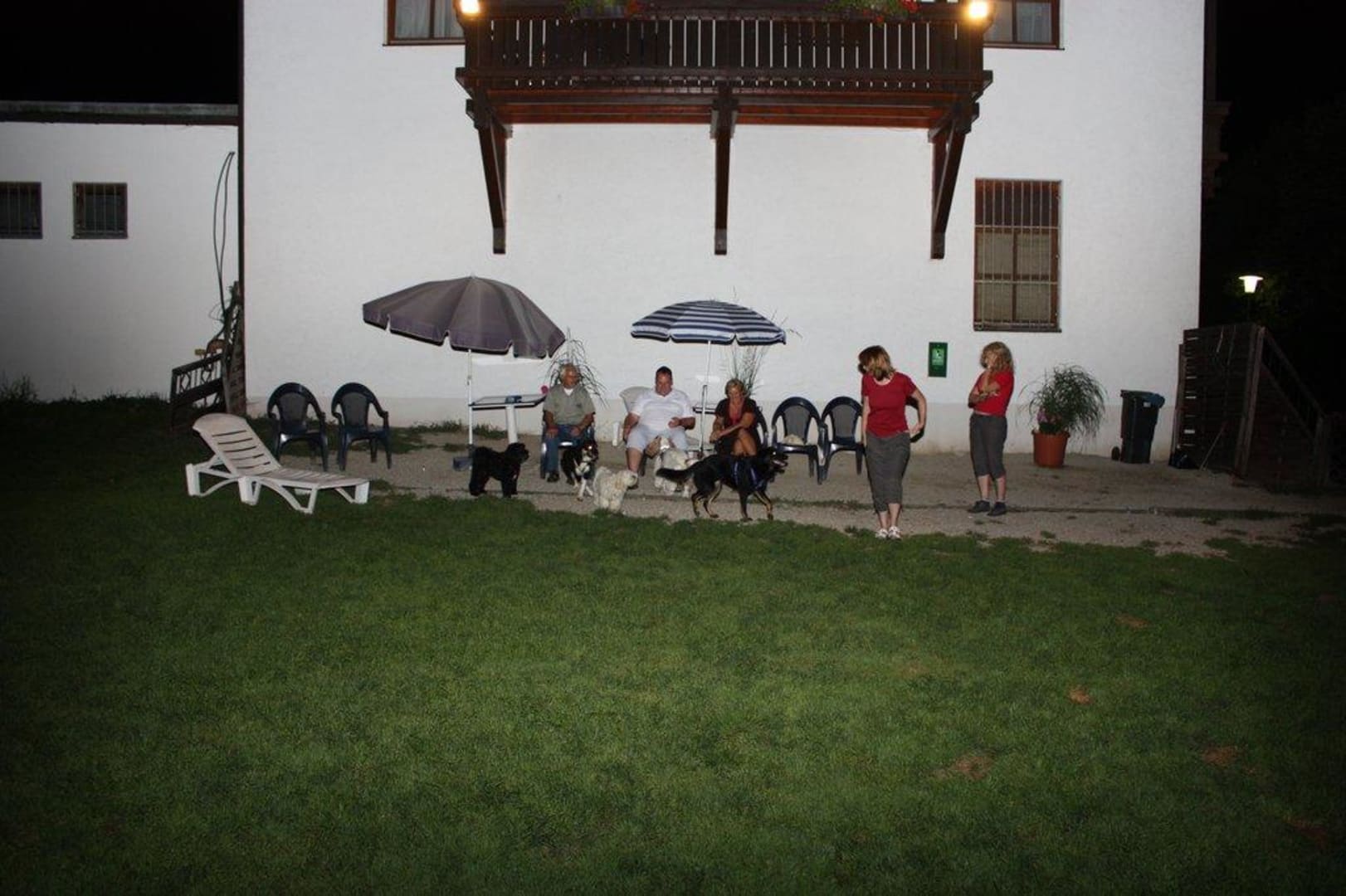 Hundewiese"kleine" eingezäunte Hundewiese direkt am Hotel, bei Nacht, beleutet durch Strahler wowie Solarlämpchen am Rand.