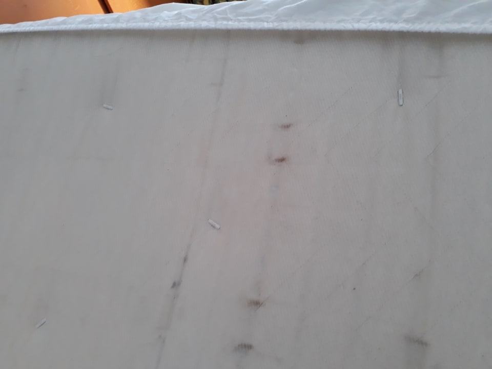 Dreckige Gästebettmatratze im Wohnzimmer Appartment Resort Falkner