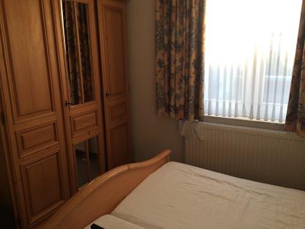Schlafzimmer mit Doppelbett. Die Matratzen sind sehr gut und die Wäsche ist sauber. Das Fenster geht leider zu der Seite der Schule raus und somit ist es morgens bei Schulbeginn und zu den Hofpausen etwas laut.
